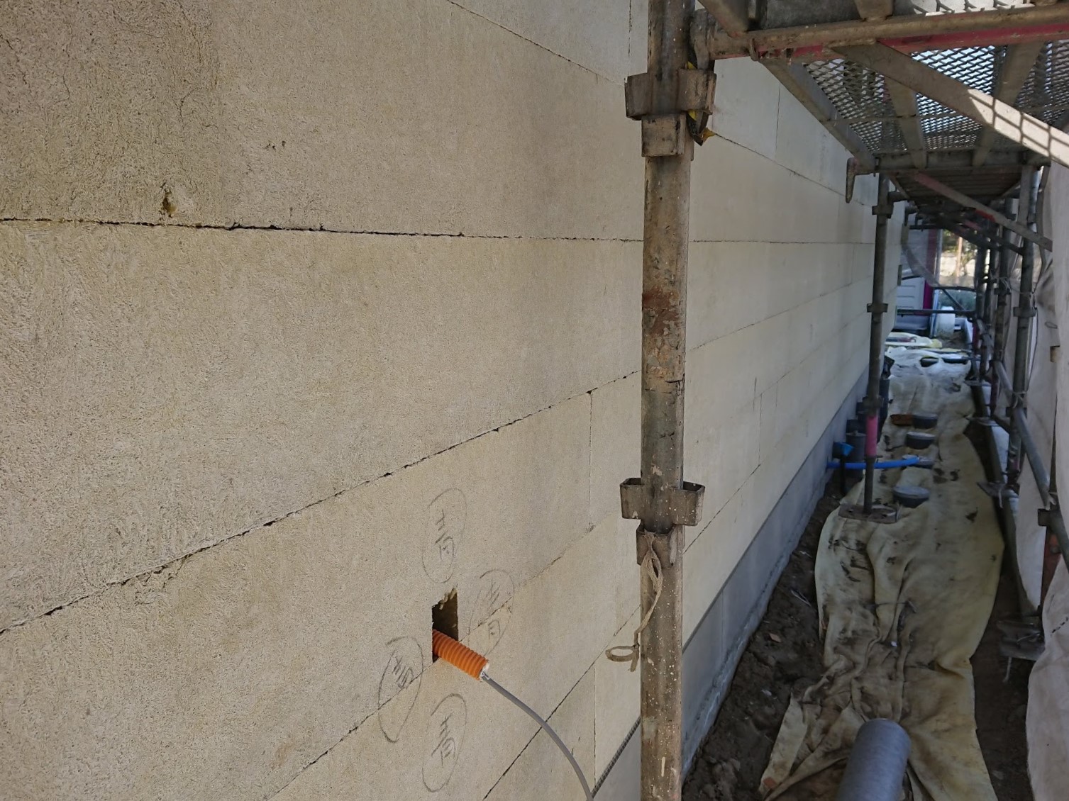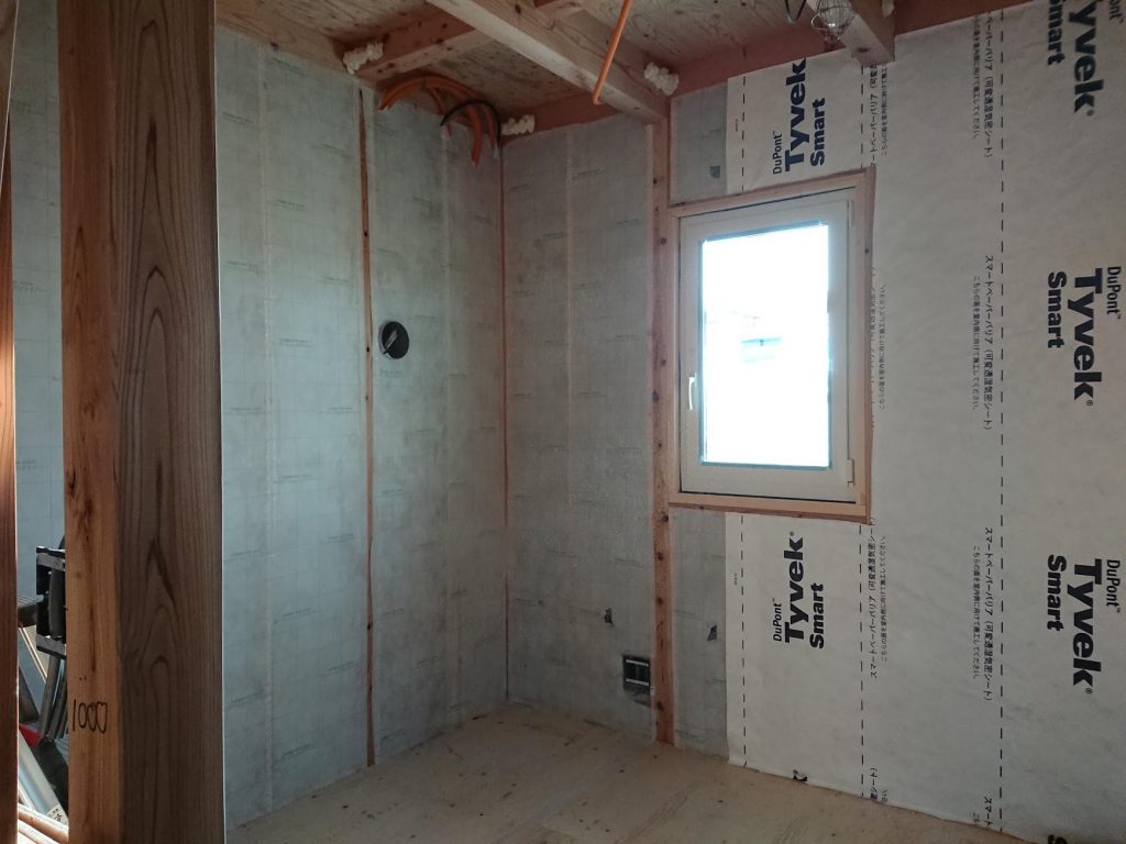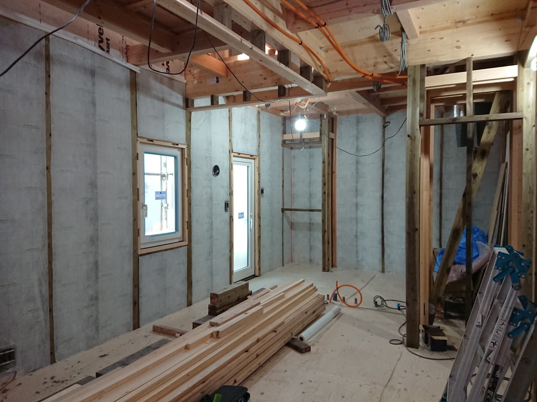 1階は2階からの衝撃音低減の為、防震吊り木を使用しています。