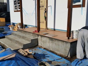 本日はポーチのタイル貼りを行っております。