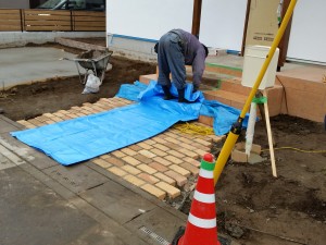 アプローチ部分にレンガを並べました。