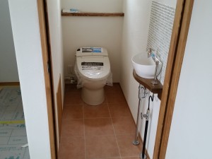 トイレの手洗い器も取付完了です!