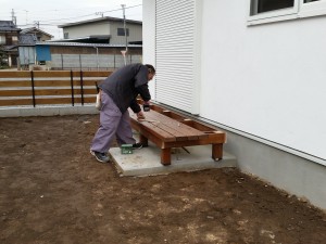 本日は、ウッドデッキを作成しています。