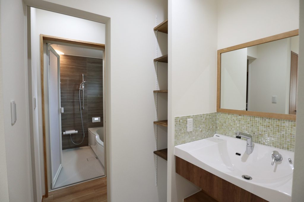 収納たっぷりのリビングは、大きなテレビボードも造作。