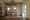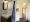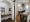 アール開口が柔らかな印象のリビングに造作した、パソコンデスク。 造作の家電収納棚。キッチンの側面は本の収納棚を造作。